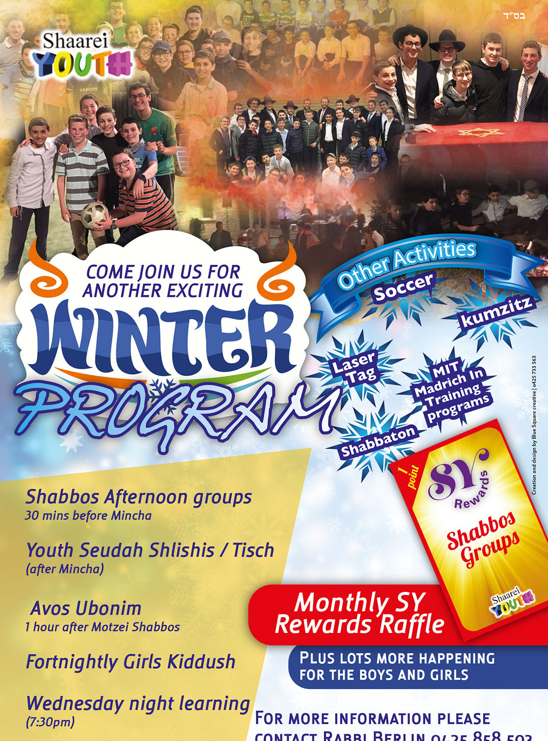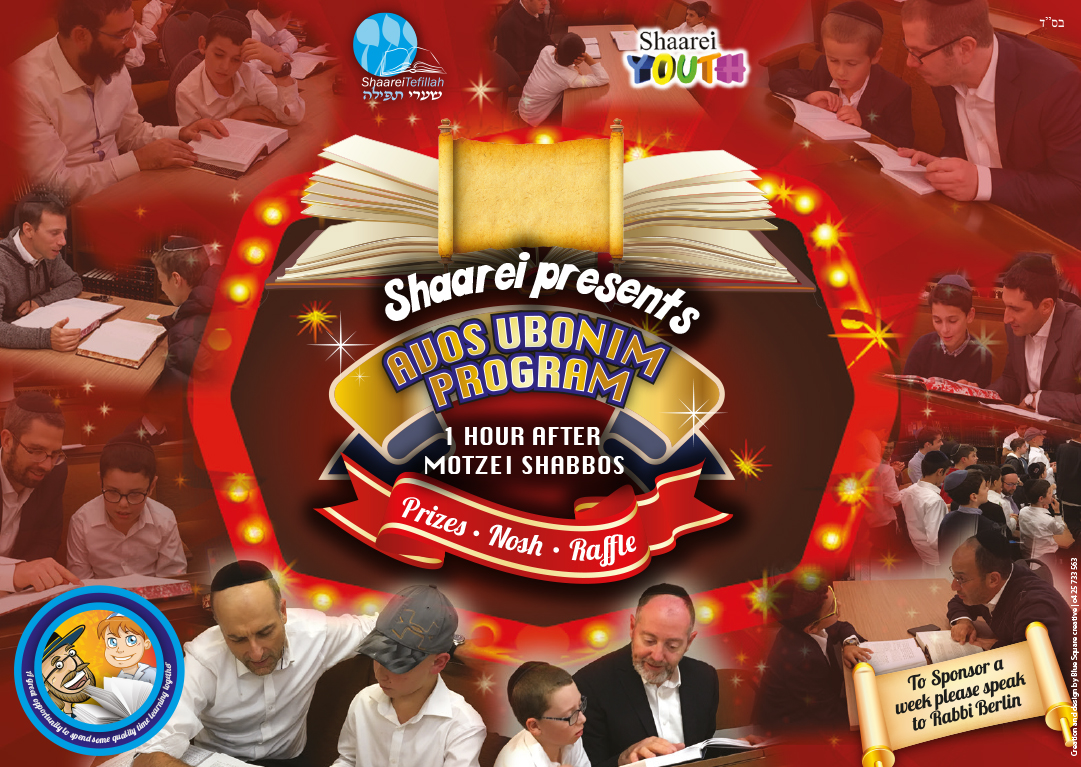 The Shabbos afternoon groups this week are at 4:30-5:00pm