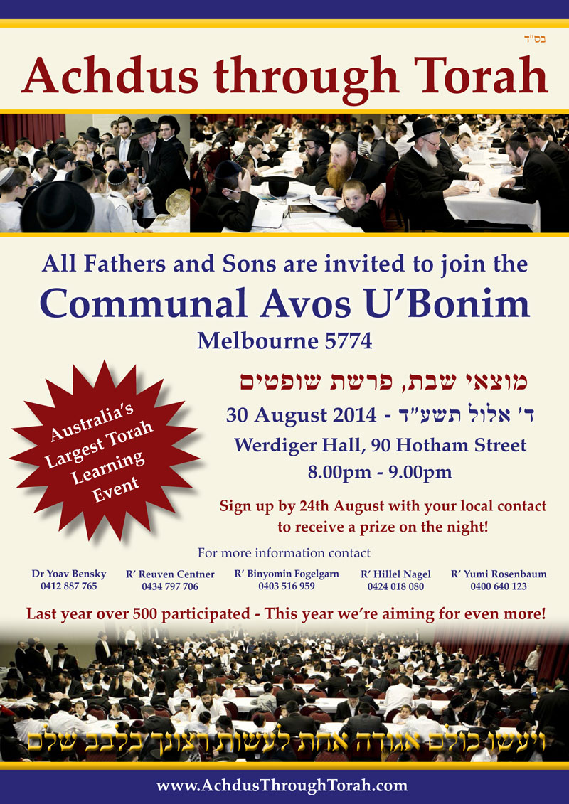Motzei Shabbos Parshas Shoftim (30th August) see attached flyer for more