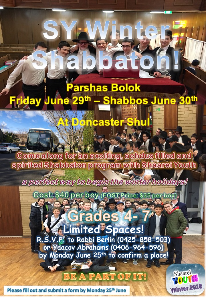 The Shabbos afternoon groups this week are at 4:10-4:40pm