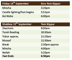 Yom Kippur & Sukkos Times + Details of Simchas Torah lunch