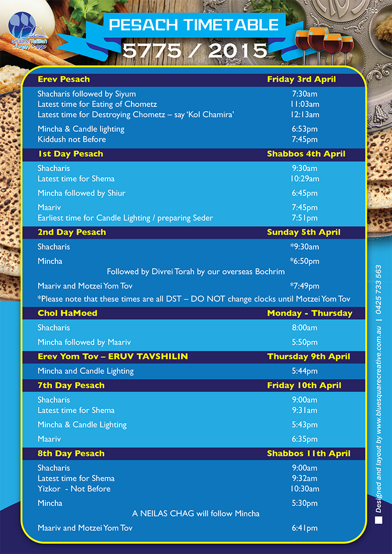 Please see attached Newsletter + Pesach Timetable