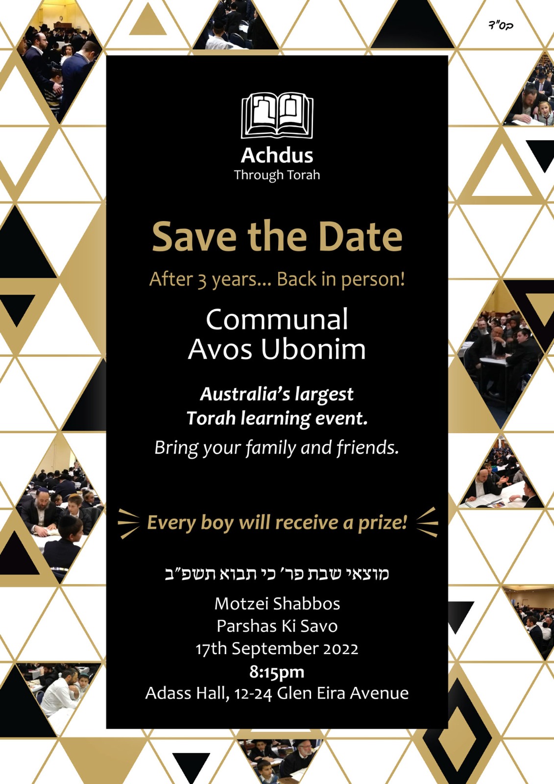 SAVE THE DATE - MOTZEI SHABBOS PARSHAS KI SAVO