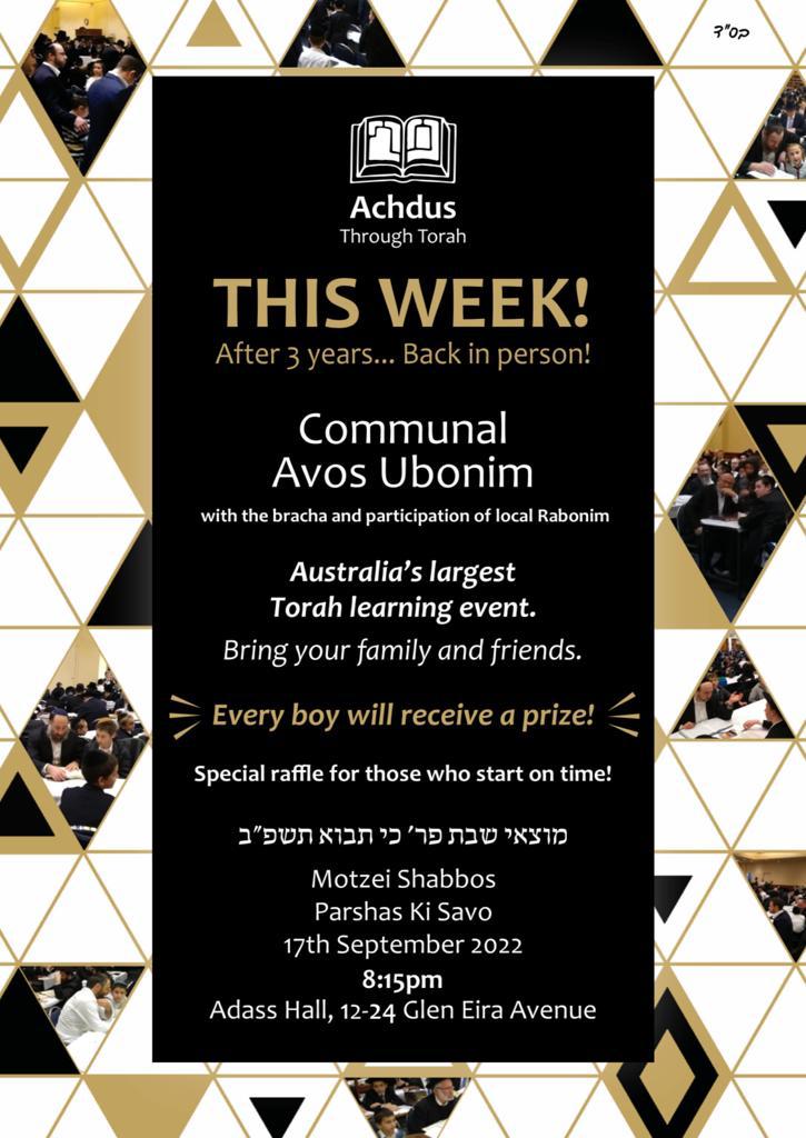 This weeks Avos Ubonim has been Kindly sponsored by Mannie and Masha Cohen