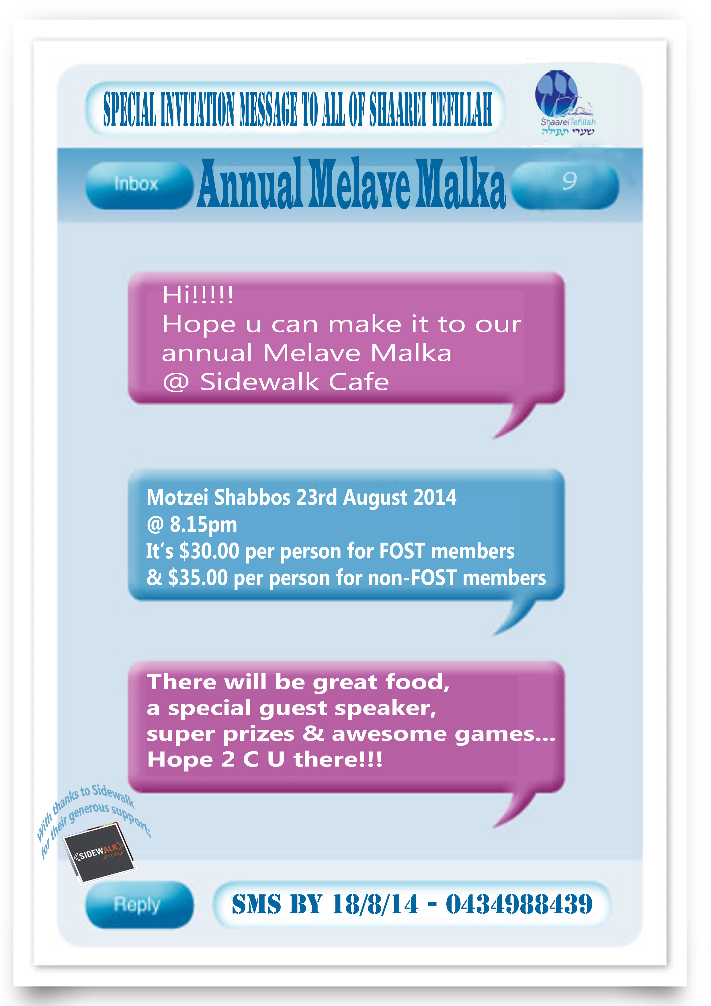 Only 1 week until the Shaarei Melave Malka, dont forget to RSVP, we need