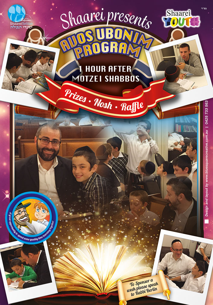 Avos Ubonim will take place on Motzei Shabbos @7:00-7:45pm