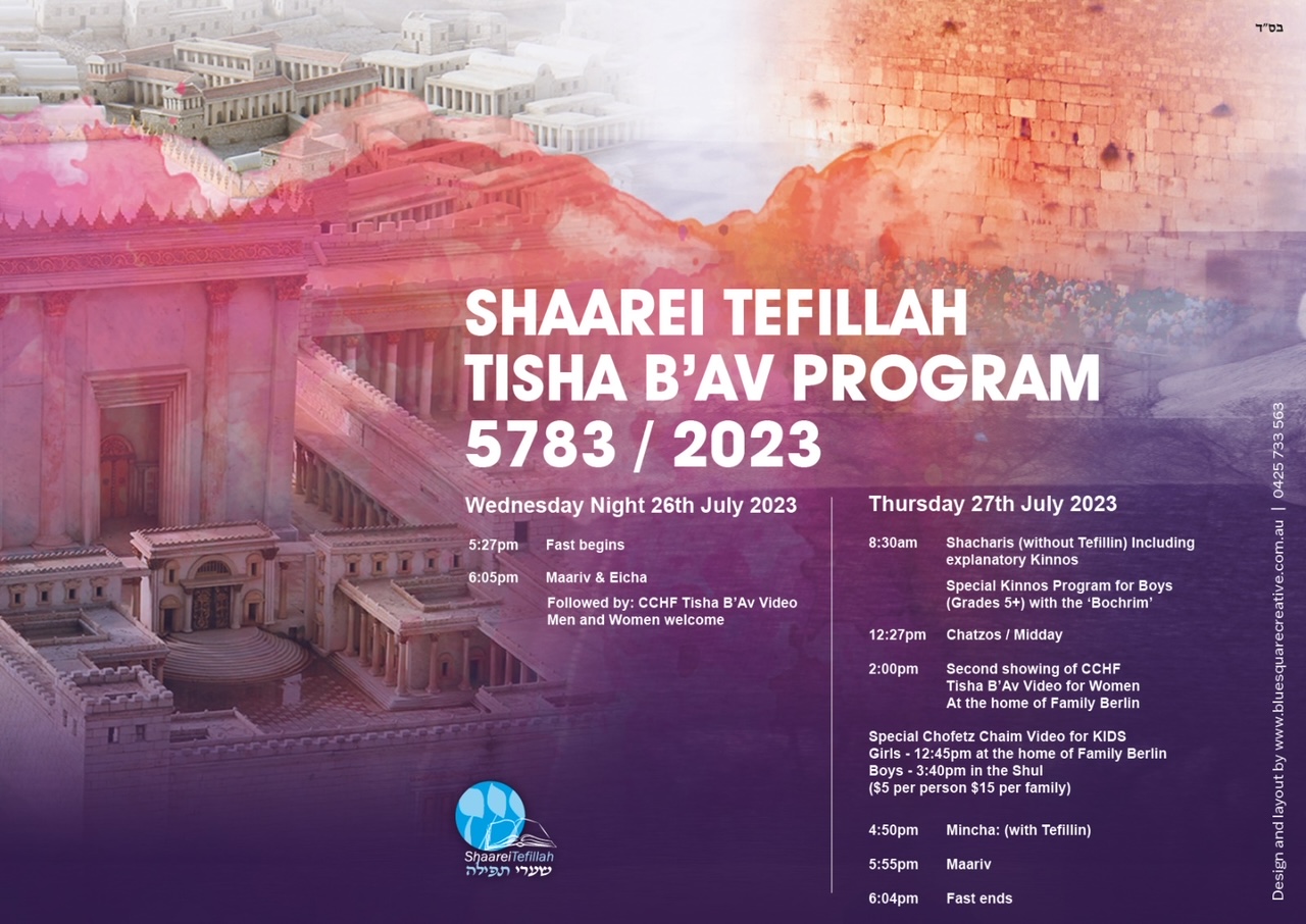 The Rabbi will be available for Mechiras Chometz after Maariv throughout the