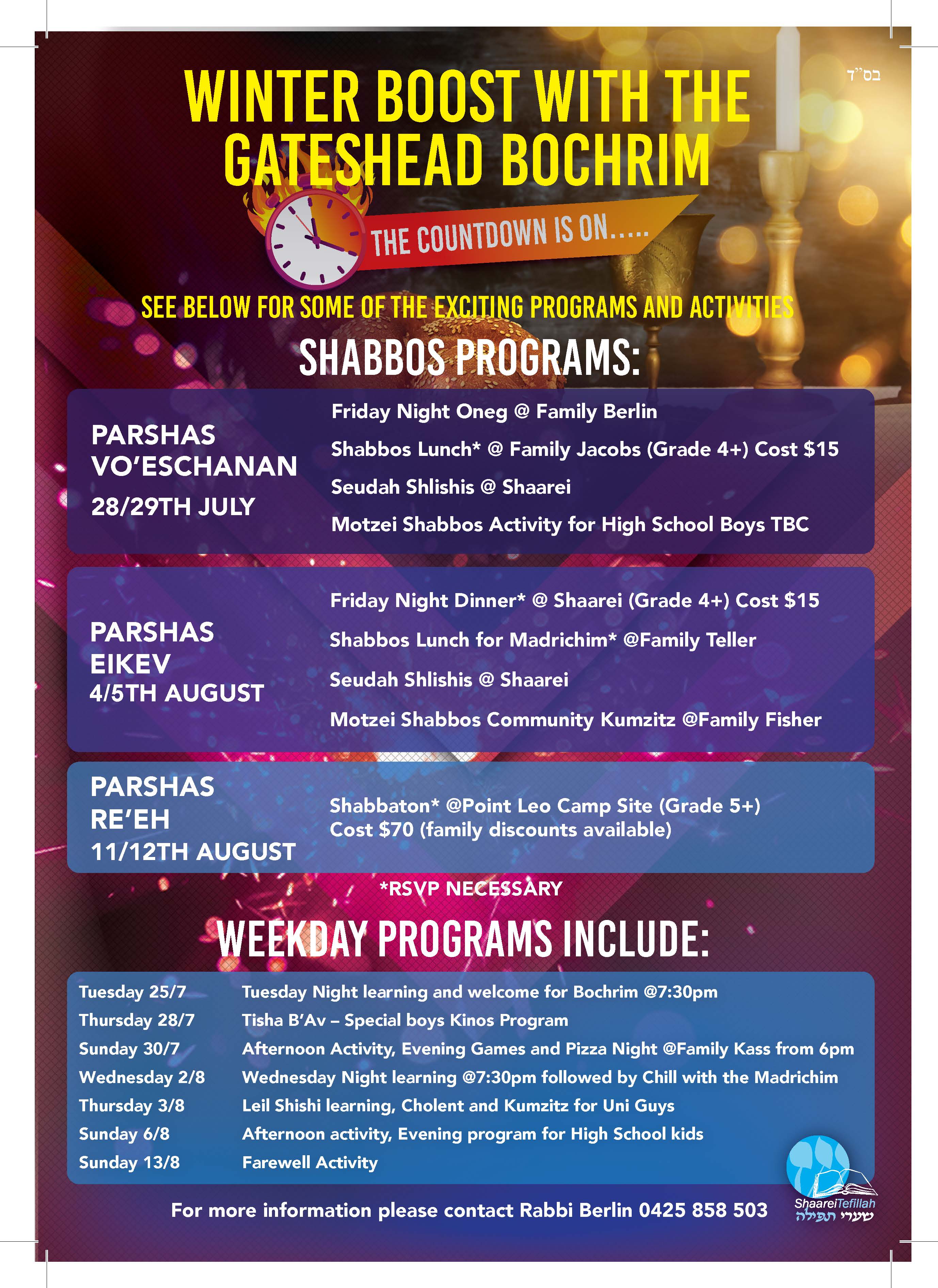 Shabbos Afternoon Groups with your Madrichim - 30 mins before the late