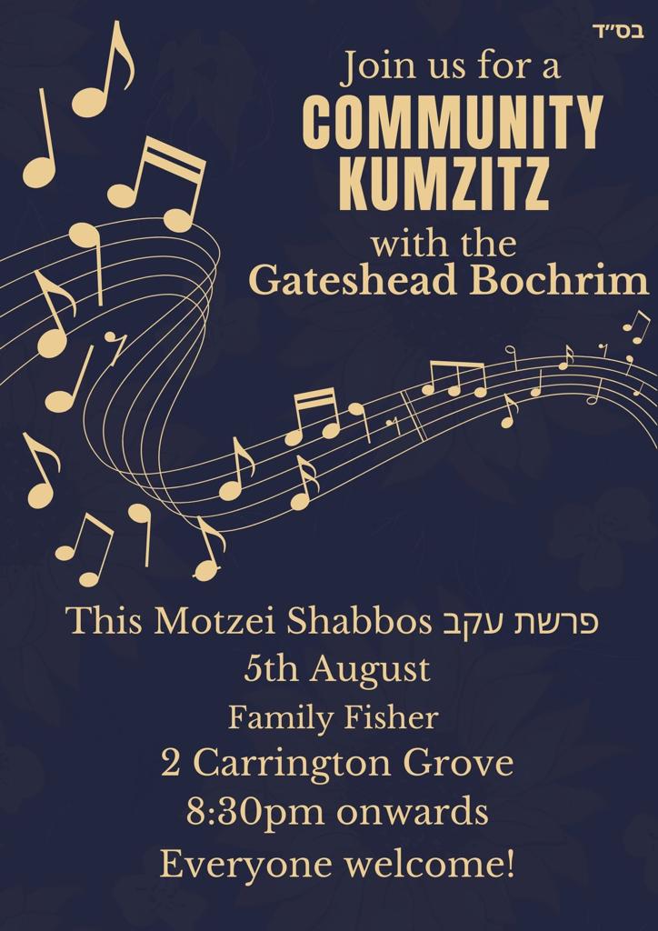 This Motzei Shabbos 7:15-8:00pm
