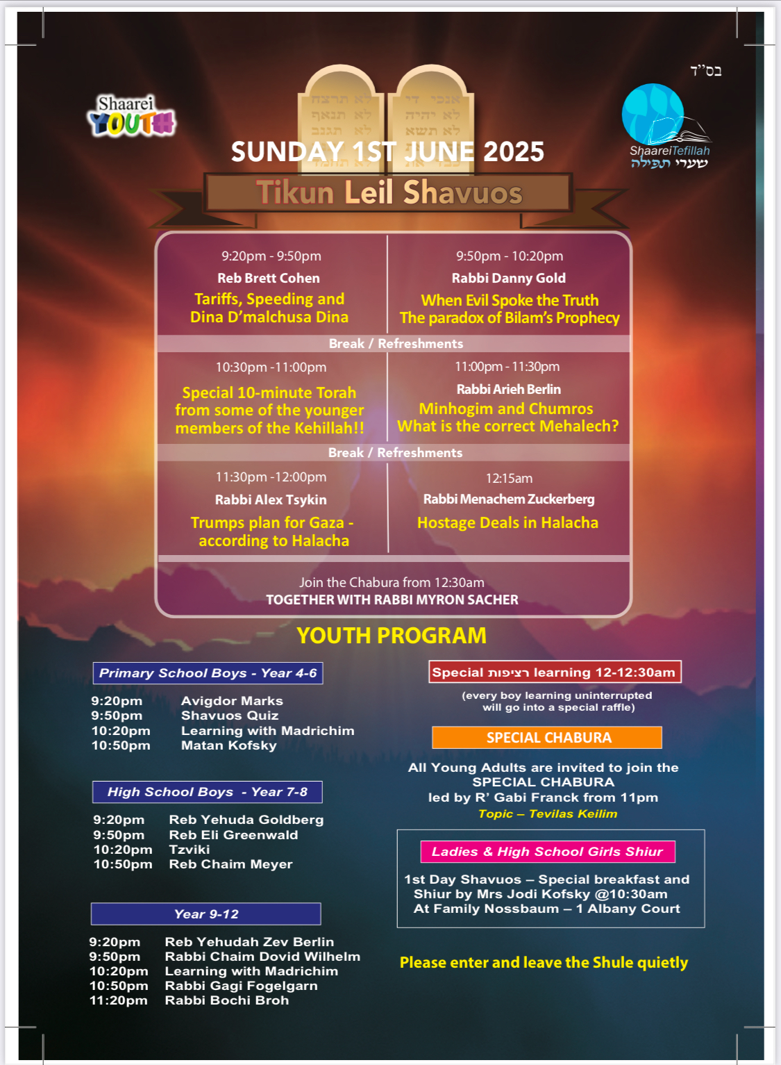 The kiddush this week has been kindly sponsored by Daniel and Amanda Teller