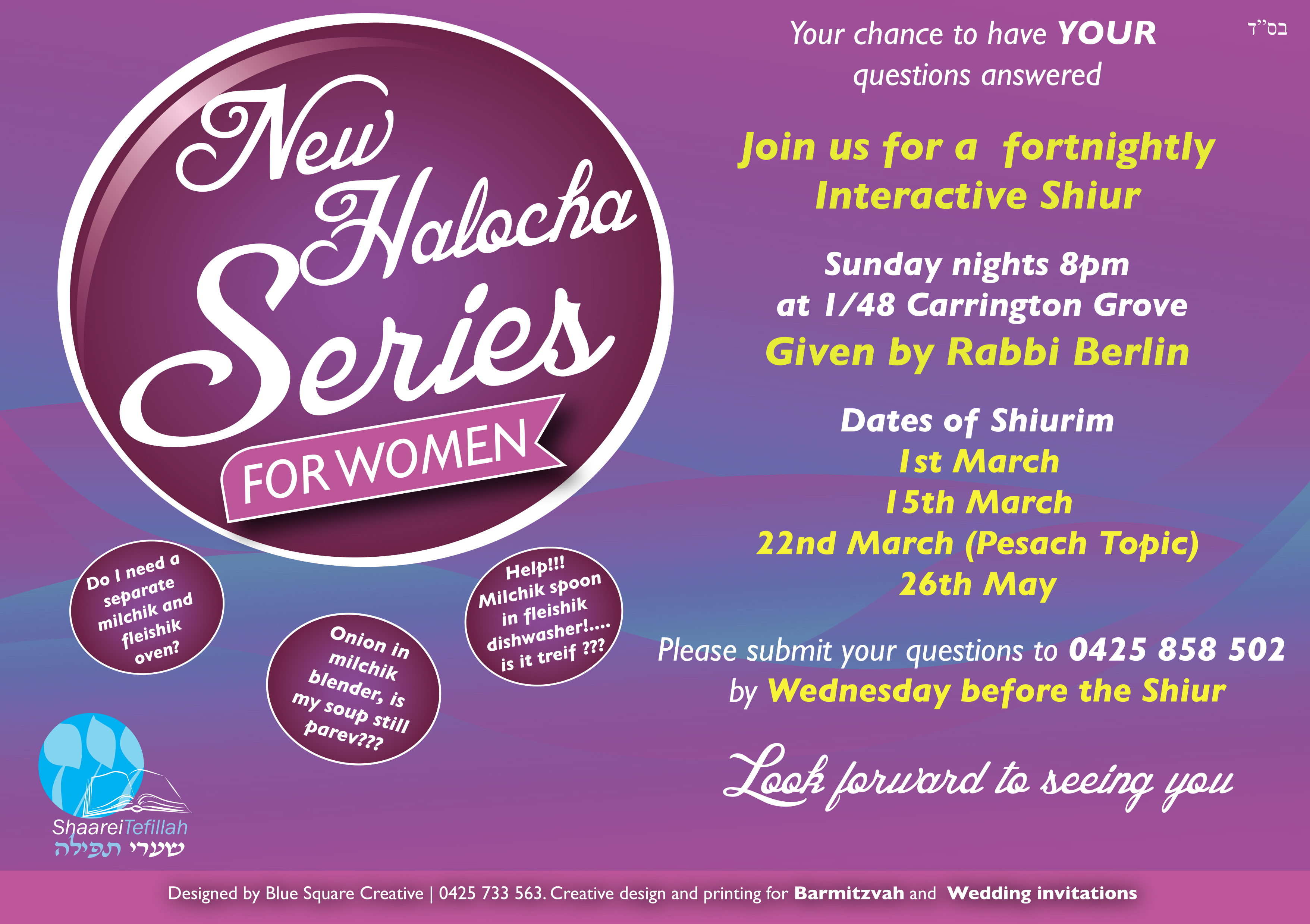 The fortnightly ladies shiur will continue this Sunday Night @8pm